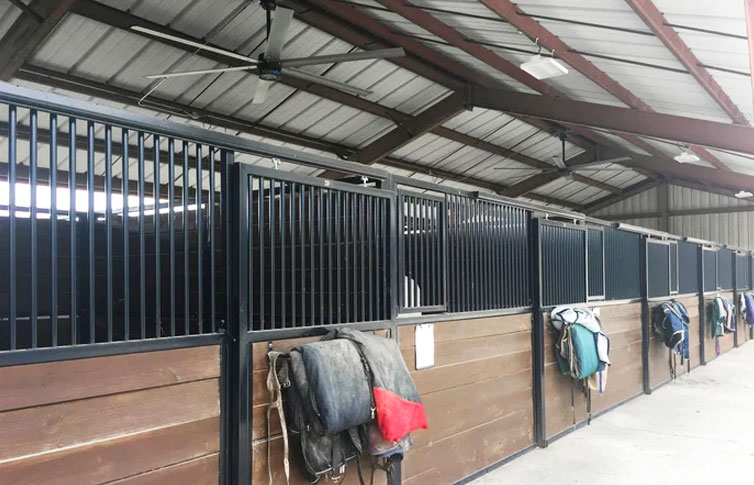 凡斯智能的多功能、高性能工業(yè)大吊扇是大型馬廄(馬場)的理想選擇,直徑可達7.3米,最小3.6米, 多種型號供您選擇,為您的馬廄提供全年舒適感,選擇合適的型號可查看凡斯工業(yè)大吊扇產(chǎn)品中心。